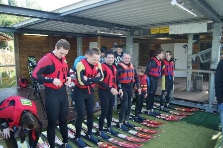 Beim diesjährigen Sommerfest ging es aufs Wasser. Wie auch sonst bei unseren Feiern haben wir uns auch in diesem Jahr wieder körperlich vor dem Grillen betätigt. Zu diesem Anlass haben wir am 30.06. eine Wasserskianlage in Langenfeld gebucht . Für die meisten war dies eine ganz neue Erfahrung, die aber jedem eine Menge Spass gebracht hat. Alle schafften nach gut 2 Stunden zumindest ein paar Runden auf dem See zu drehen ohne in den Kurven hinzufallen. Woran wir noch arbeiten sollten ist wahrscheinlich die Haltung, an der wir an diesem Tag jedoch noch nicht arbeiten konnten. Im Anschluss an das Wasserski fahren wurde Nachmittags an der Halle gegrillt und der Abend perfekt abgeschlossen.