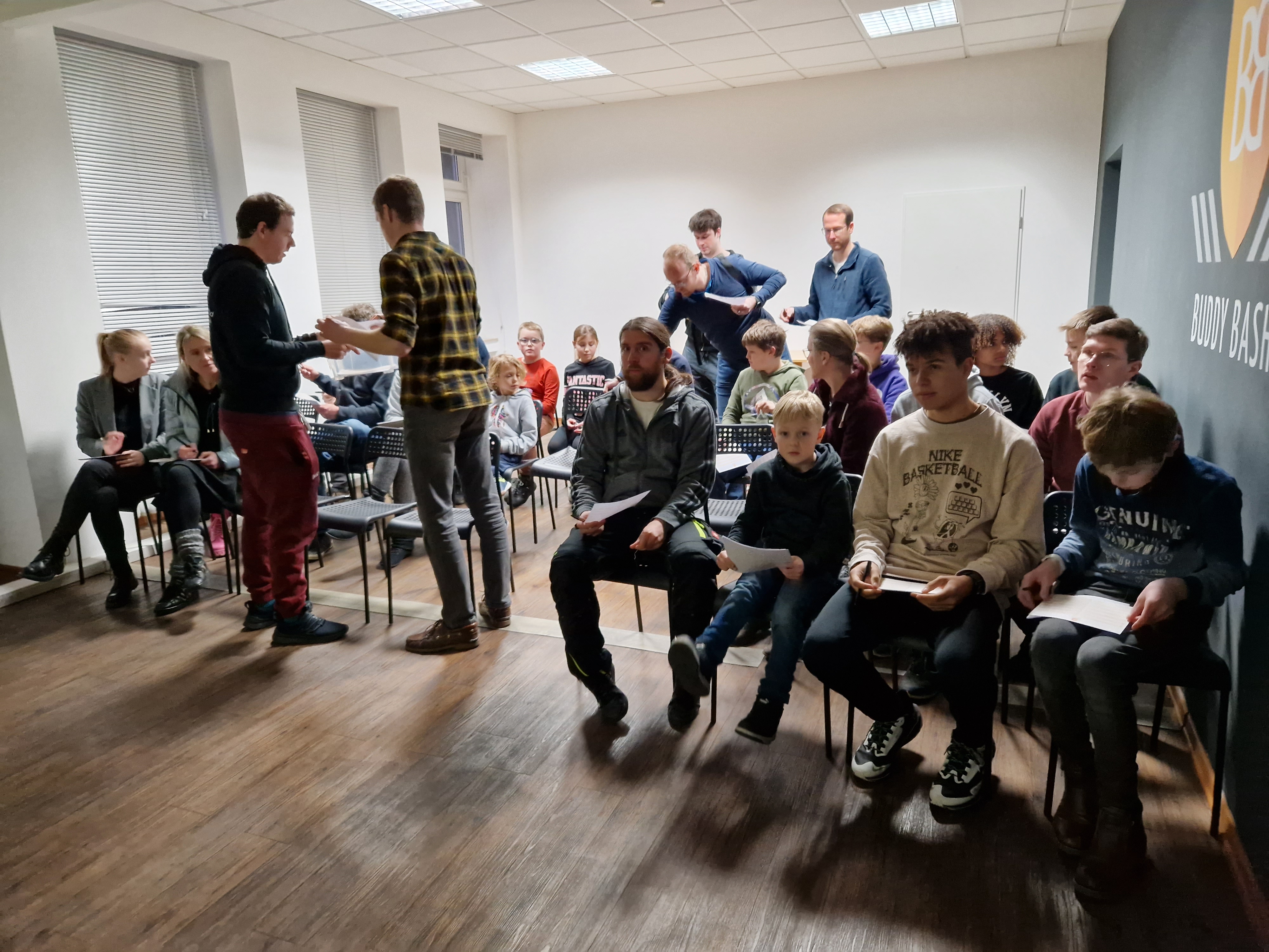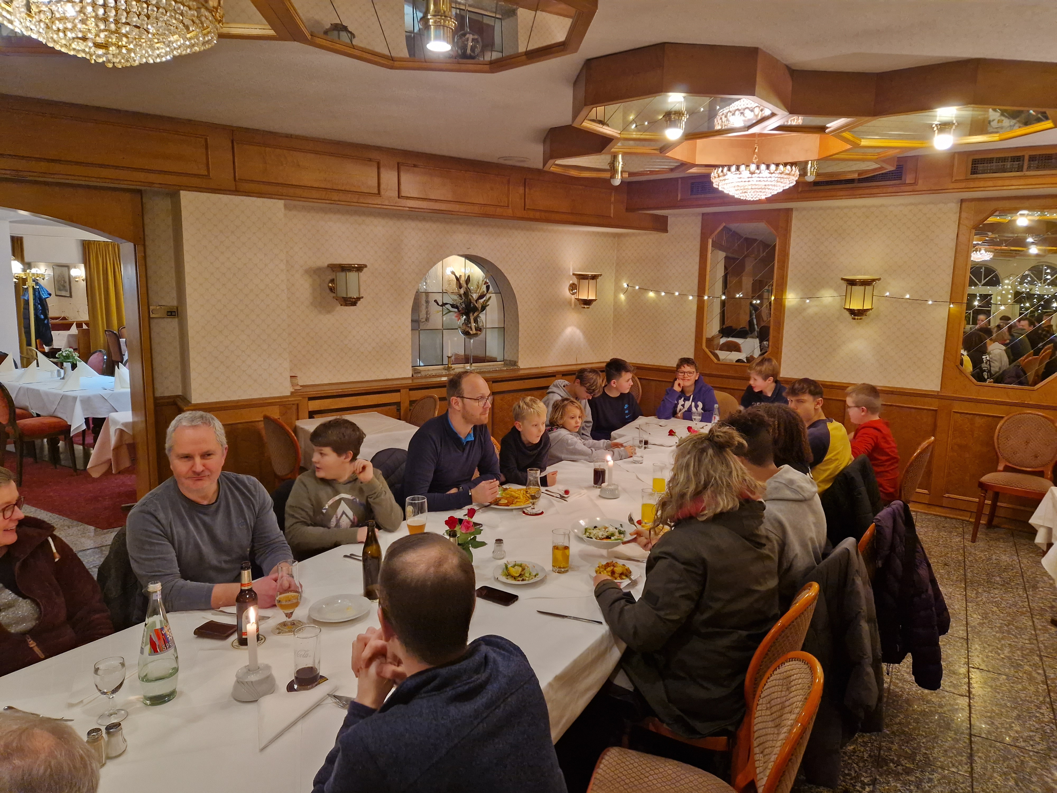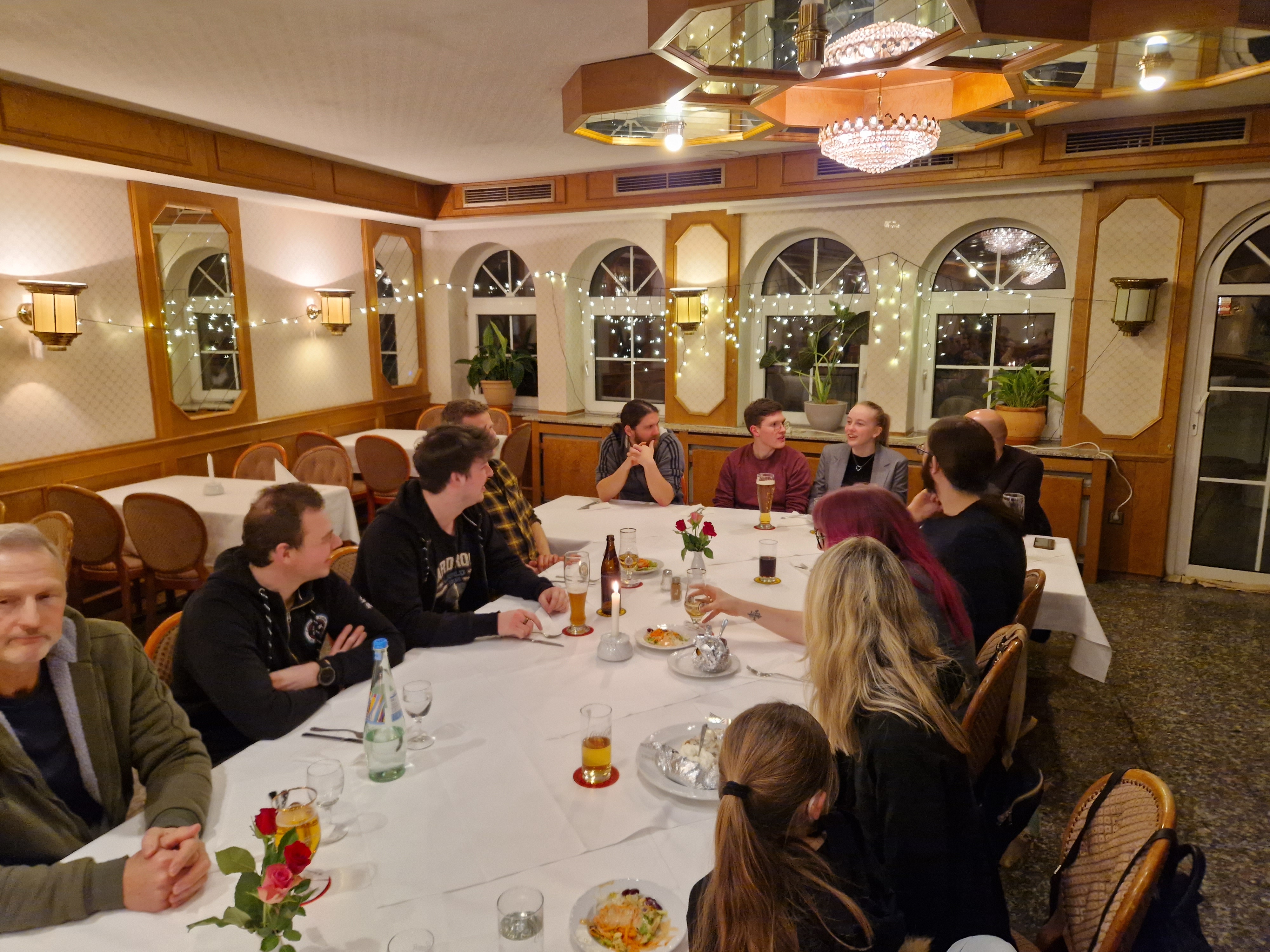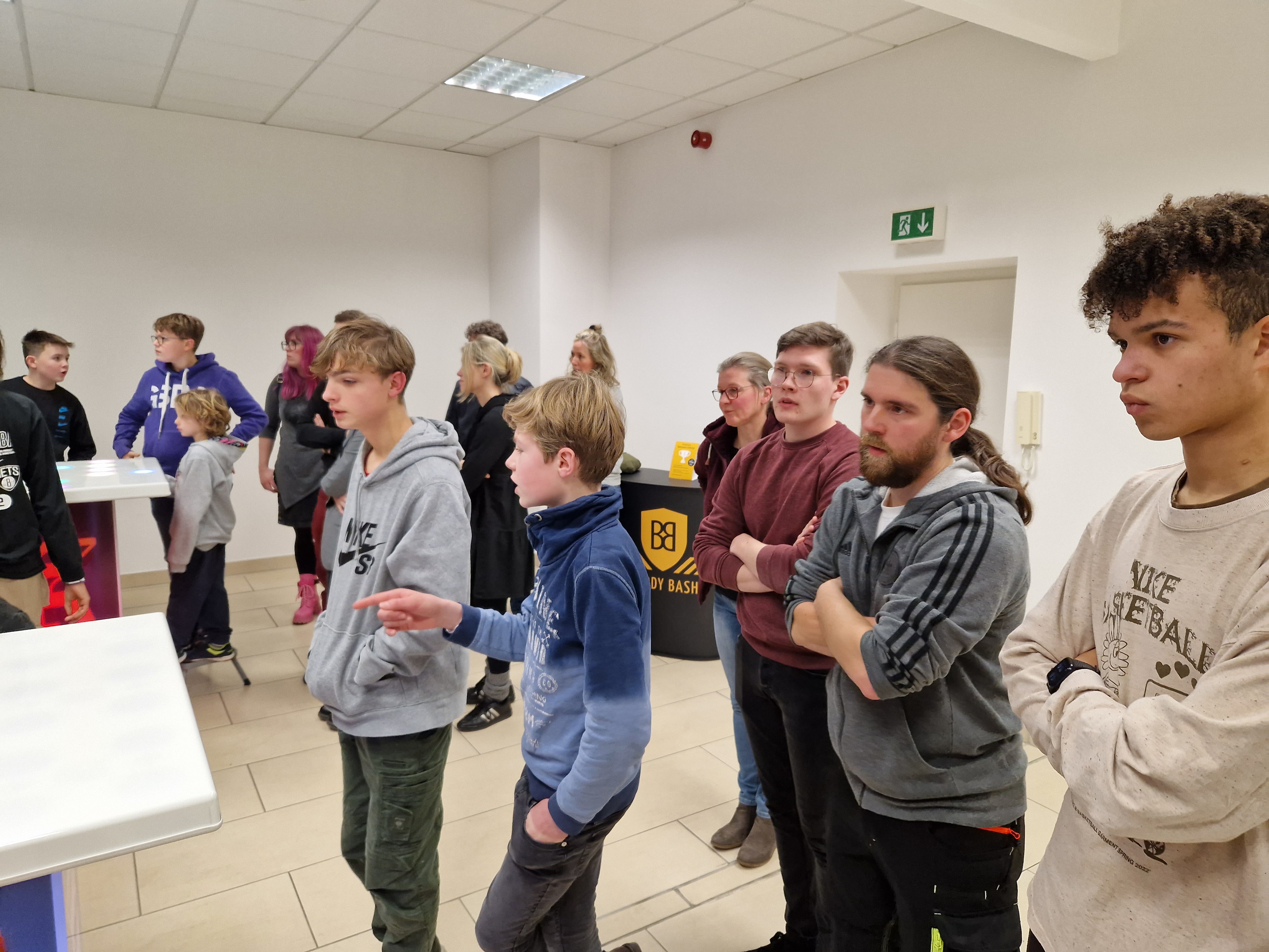 Gestern, am 28.01.23, wurde unsere Weihnachtsfeier nachgeholt. Thema dieses Mal war ein Gruppenevent namens Buddy Bash. Mit insgesamt 28 Personen haben wir uns in 4 Teams ein Battle geliefert, in dem es um Geschicklichkeit, Geschwindigkeit und Wissen ging. Die Teams wurden willkürlich zusammengesetzt und mussten ihren Teamgeist erst einmal zusammenbringen und organisieren. Die Aufgaben waren für jede Altersgruppe geeignet und alle Teilnehmer waren mit vollem Enthusiasmus dabei. Leider wurden gelegentlich richtige Antworten von Kindern überstimmt, fälschlicherweise auf medizinische Fachleute vertraut oder auf Bogenschützen gezählt. Trotz dieser Mieseren blieben die Teams aber geeint und stellten sich den nächsten Herausforderungen. Es war ein wirklich gelungener Nachmittag, der anschließend beim Essen am Abend seinen Ausklang fand. Die Wahl des Restaurants war evtl. nicht die beste Wahl aber das konnte die Stimmung nicht trüben.